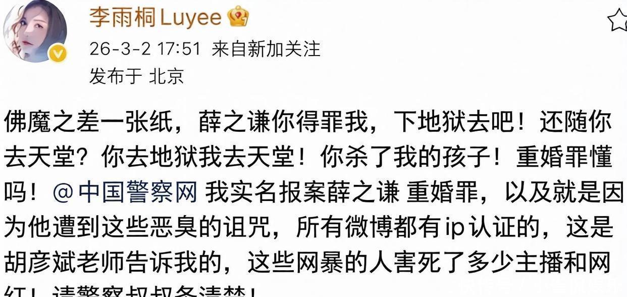 最出乎意料的,是这场舆论漩涡最后还牵连到了他三个女儿。有人翻旧账,有人影射关系,有人揣度家庭。风口上,任何细小的细节都被无限放大。那几天,我刷着评论区,心里真有股说不出的焦躁,舆论的火一旦烧起来,连空气都像混着焦味儿。李雨桐的一番爆料成了导火索。她提到薛之谦、提到节目里的几句“吐槽”,让网友开始对号入座。她后续的发言更添油加醋,连“举报重婚”、“撞伤脑震荡”都扔出来。事情真假未定,但热度如同雪球滚着越大。每次点开话题榜,屏幕上红得刺眼,像是在提醒你,哪儿有瓜,哪儿就有流量。